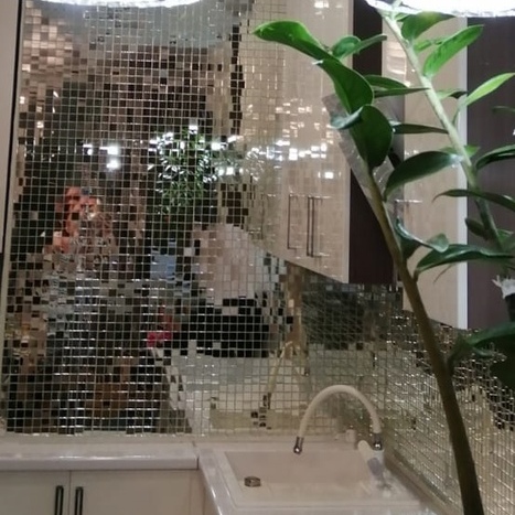 Даже самая обычная кухня преобразится, если отделать ее зеркальной мозаикой. Этот великолепный и одновременно практичный материал решает сразу несколько задач. Зеркальная плитка не только защищает стены, она еще и приносит радостное настроение в любое помещение! А если вспомнить, что на бликующей мозаике практически незаметны неизбежные брызги и капельки, то такой фартук становится чуть ли не идеальным.